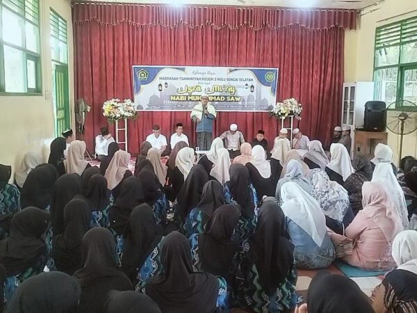 Hulu Sungai Selatan (MTsN 3 HSS) — Madrasah Tsanawiyah Negeri (MTsN) 3 Hulu Sungai Selatan (HSS) menggelar peringatan Isra Mi’raj..